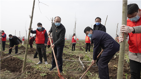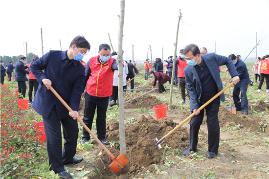 三埋土、兩踩實、一提根……三川大地春潮涌,植樹造林正當(dāng)時。3月12日上午,鄲城縣四個班子領(lǐng)導(dǎo)崔衛(wèi)國、李建軍、王偉等和廣大志愿者、群眾一起來到皇姑河畔義務(wù)植樹現(xiàn)場,揮鍬鏟土,栽植新綠,為鄲城大地再添一片綠意。