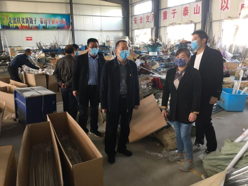 為貫徹落實(shí)上級(jí)檢察機(jī)關(guān)疫情防控期間積極服務(wù)保障復(fù)工復(fù)產(chǎn)的有關(guān)精神,保障疫情防控與脫貧攻堅(jiān)工作兩手抓、兩不誤,近日,沈丘縣人民檢察院黨組書記、檢察長李世龍率隊(duì)深入到大邢莊鎮(zhèn)宋莊、清涼寺、西李莊三個(gè)扶貧車間走訪調(diào)研,查看疫情防控措施、復(fù)工復(fù)產(chǎn)等情況,詳細(xì)了解并積極解決企業(yè)復(fù)工復(fù)產(chǎn)中存在的困難及訴求,向企業(yè)贈(zèng)送一批口罩、消毒液等防疫物資。