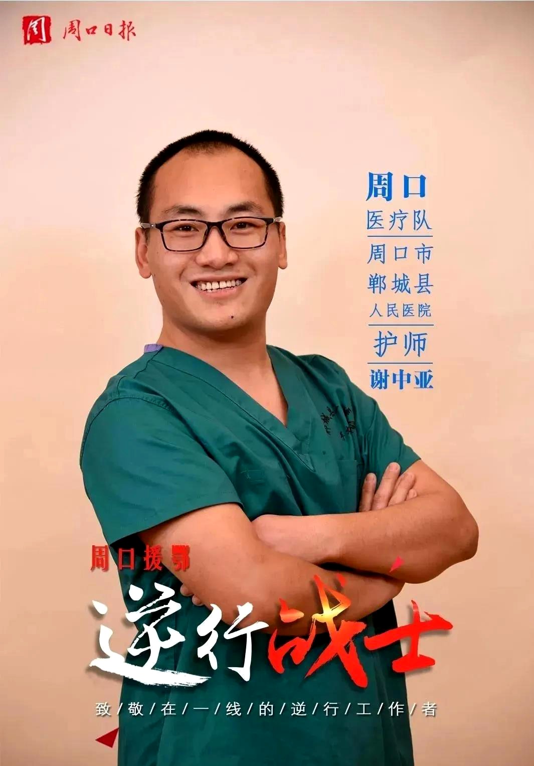 謝中亞是鄲城縣人民醫(yī)院重癥醫(yī)學(xué)科(ICU)護(hù)士。2月21日,剛剛結(jié)婚三個(gè)月的謝中亞主動(dòng)請戰(zhàn),前往一線參加武漢疫情防控救治工作。其實(shí),謝中亞結(jié)婚時(shí)正趕上醫(yī)院等級評審,謝中亞的婚假只請了三天就回到科室工作。本想著忙完醫(yī)院評審工作度蜜月,結(jié)果疫情又打亂了計(jì)劃。對此,他毅然決然參戰(zhàn),體現(xiàn)了一名醫(yī)護(hù)人員的責(zé)任和擔(dān)當(dāng)。