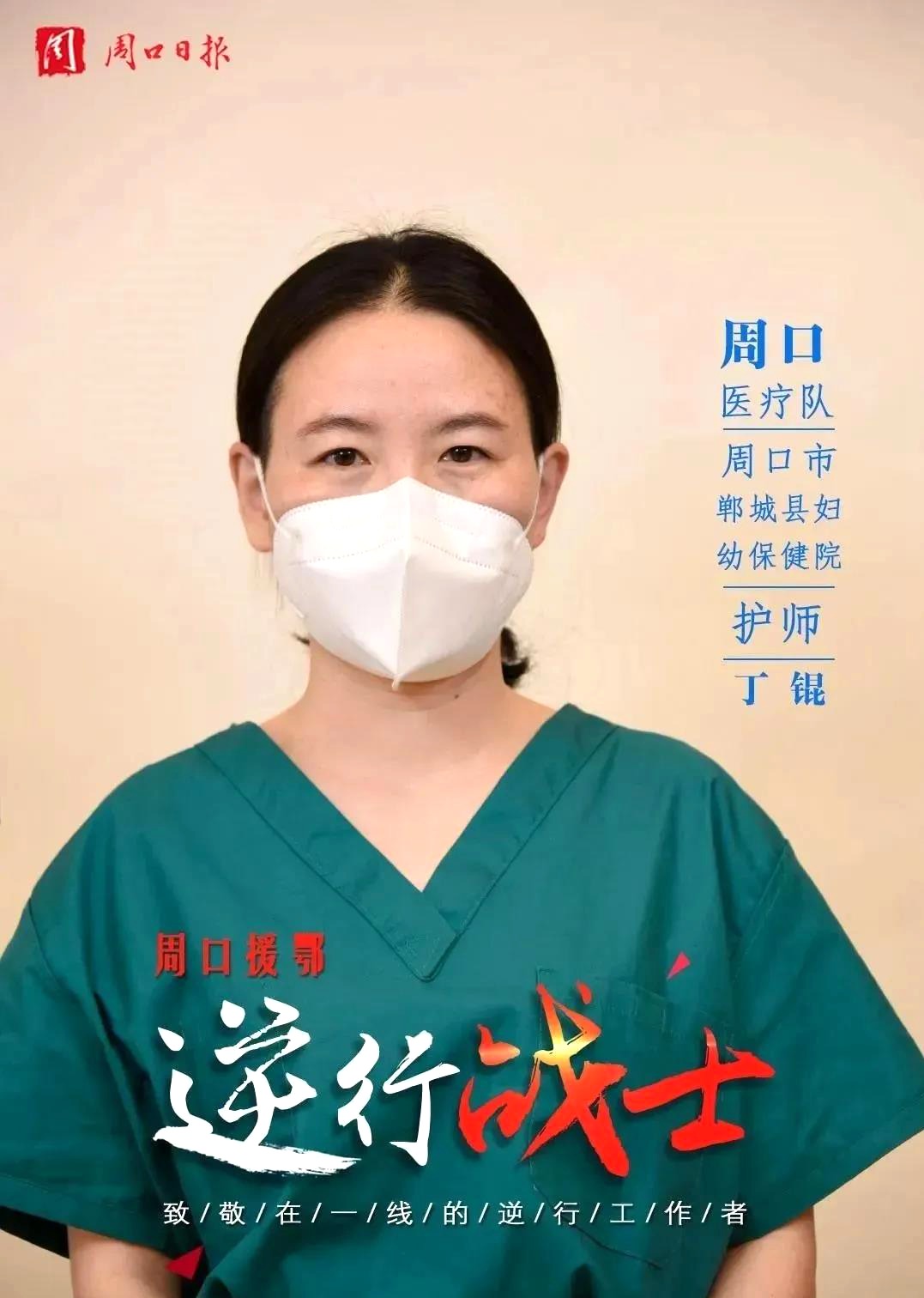 今年27歲的丁錕來自鄲城縣婦幼保健院重癥監(jiān)護(hù)室,她臨床經(jīng)驗(yàn)豐富,具有扎實(shí)的危重患者救治護(hù)理能力。在接到醫(yī)院支援武漢的通知后,第一時(shí)間向醫(yī)院遞交了請戰(zhàn)書,主動(dòng)請纓支援武漢疫情前線。她奔赴武漢時(shí),1歲多的孩子還沒斷奶,她不但經(jīng)受著自己生理的痛苦,還經(jīng)受著孩子斷奶的精神打擊,以國家為重,毅然前行。正詮釋了她以“位卑未敢忘憂國”為格言而落實(shí)到具體的行動(dòng)上。
