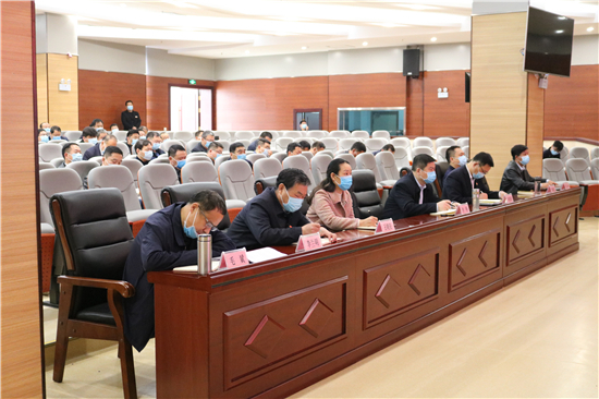 3月20日,鹿邑縣組織收聽(tīng)收看市委農(nóng)村工作(視頻)會(huì)議。縣領(lǐng)導(dǎo)李剛、許四軍、王曉征、張國(guó)慶、李蘭明、張峰、毛斌等在縣文化中心分會(huì)場(chǎng)與縣直各部門(mén)、駐鹿各單位主要負(fù)責(zé)同志,各鄉(xiāng)鎮(zhèn)辦事處黨(工委)書(shū)記一起收聽(tīng)收看。