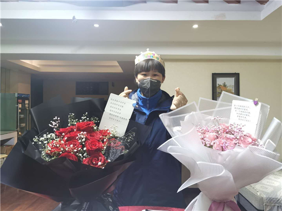 隊(duì)伍集合完畢,接下來(lái)的一幕令許聽聽始料未及。來(lái)自當(dāng)?shù)厣鐓^(qū)的工作人員,手捧蛋糕、鮮花,唱著生日歌,來(lái)到許聽聽面前,向她致以生日祝福。特殊時(shí)期,身處抗疫一線,忙于照顧病人,許聽聽此前對(duì)自己的23歲生日沒(méi)有任何憧憬,她告訴記者,其實(shí)她當(dāng)天沒(méi)想起來(lái)是她的生日,面對(duì)突如其來(lái)的生日祝福,許聽聽說(shuō):“當(dāng)時(shí)的心情既激動(dòng)又感動(dòng)?!?。