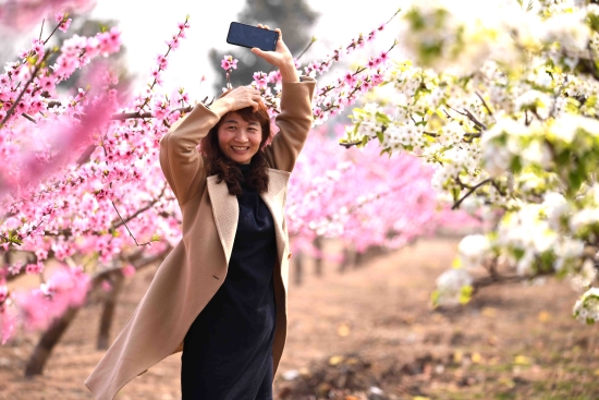 近日,泛區(qū)農(nóng)場(chǎng)萬(wàn)畝果園內(nèi)梨花、桃花競(jìng)相盛放,粉色桃花似錦,白色梨花如玉砌,置身其中,宛如人間仙境,吸引了不少游客前來(lái)觀賞。