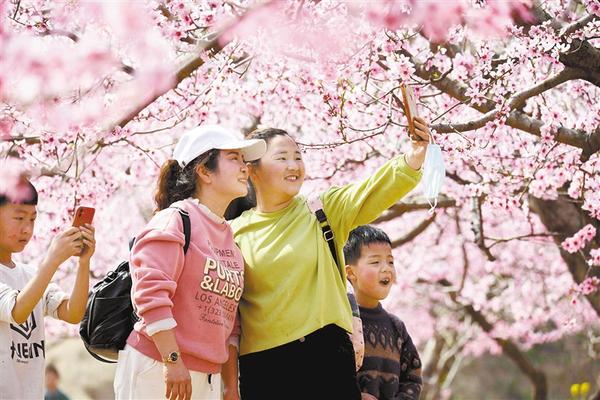 春回大地,周口處處花紅柳綠。 隨著疫情逐漸好轉(zhuǎn),宅在家里近兩個(gè)月的市民紛紛走出家門,踏青游玩享受春光,感受春天的氣息。圖為昨日市民在西華縣黃橋鄉(xiāng)萬畝桃園欣賞桃花。