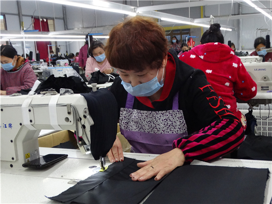 疫情不能放松,復(fù)工復(fù)產(chǎn)也要穩(wěn)妥推進(jìn)。連日來(lái),沈丘縣婦聯(lián)鼓勵(lì)引導(dǎo)和組織廣大婦女群眾科學(xué)安全有序助力企業(yè)、農(nóng)業(yè)合作社、扶貧車(chē)間等復(fù)工復(fù)產(chǎn),確保戰(zhàn)"疫"扶貧兩不誤,為統(tǒng)籌推進(jìn)防疫戰(zhàn)和脫貧攻堅(jiān)戰(zhàn)貢獻(xiàn)巾幗力量。圖為沈丘縣周營(yíng)鎮(zhèn)馬營(yíng)村慧恩服飾有限公司來(lái)料加工扶貧車(chē)間內(nèi),女工們正在生產(chǎn)線(xiàn)上加工訂單服裝。