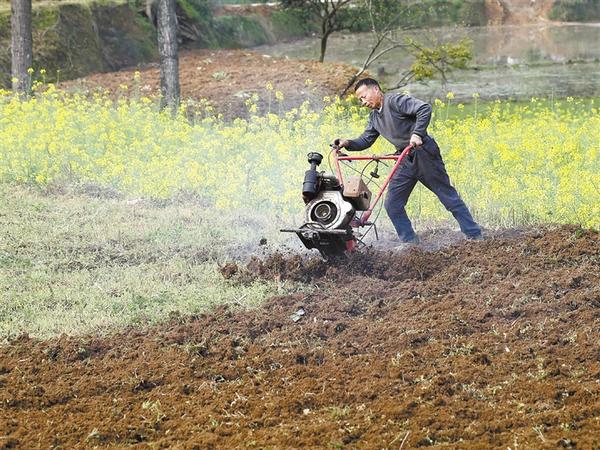圖三 昨日,沈丘縣卞路口鄉(xiāng)一農(nóng)民正在用小型農(nóng)機(jī)犁地。連日來(lái),氣溫不斷回升,當(dāng)?shù)剞r(nóng)民搶抓有利時(shí)機(jī),進(jìn)行犁地、澆水、除草等春季管理,田間地頭一派忙碌景象。 黃海濤 攝