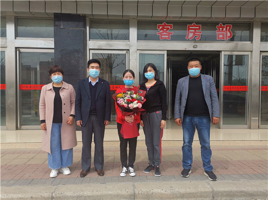 鄲城縣婦幼保健院院長(zhǎng)亢國(guó)良帶領(lǐng)副院長(zhǎng)羅素霞、護(hù)理部主任王翠蘭,到隔離點(diǎn)迎接該院援鄂英雄丁錕回家,為英雄送去鮮花,并全程護(hù)送丁錕安全返回家中。