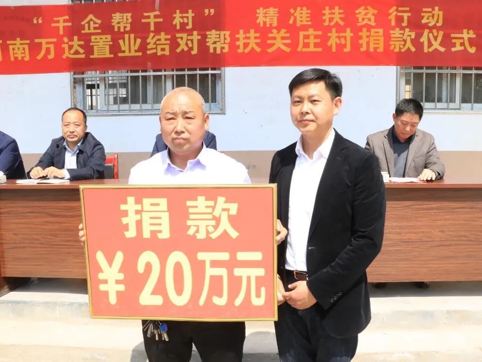 4月13日上午,河南萬達(dá)置業(yè)有限公司結(jié)對(duì)幫扶捐款儀式在市城鄉(xiāng)一體化示范區(qū)許灣鄉(xiāng)關(guān)莊行政村隆重舉行。現(xiàn)場(chǎng),該公司為關(guān)莊行政村捐款20萬元助力脫貧攻堅(jiān)。