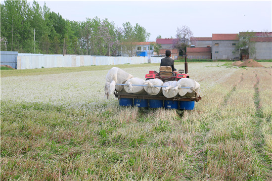 4月15日,河南省鹿邑縣谷陽辦事處張辛行政村五里廟自然村種植的近百畝蒲公英進入種子收獲期,該村黨支部書記張正濤及時組織人力,在做好疫情防控的同時,抓緊時機進行采收。除種植蒲公英外,該村還引導農戶開展葡萄、草莓等果蔬種植、牡丹、艾草等中藥材種殖,希望通過特色種植讓村民在家門口實現(xiàn)就業(yè)增收,帶動貧困九日早日脫貧致富。(記者 李瑞才 攝)