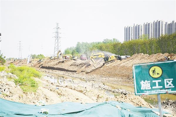 4月15日上午,洼沖溝水系植物園杜樓橋施工現(xiàn)場(chǎng),幾十輛工程機(jī)械車緊張作業(yè),熱火朝天的施工場(chǎng)景令人振奮。