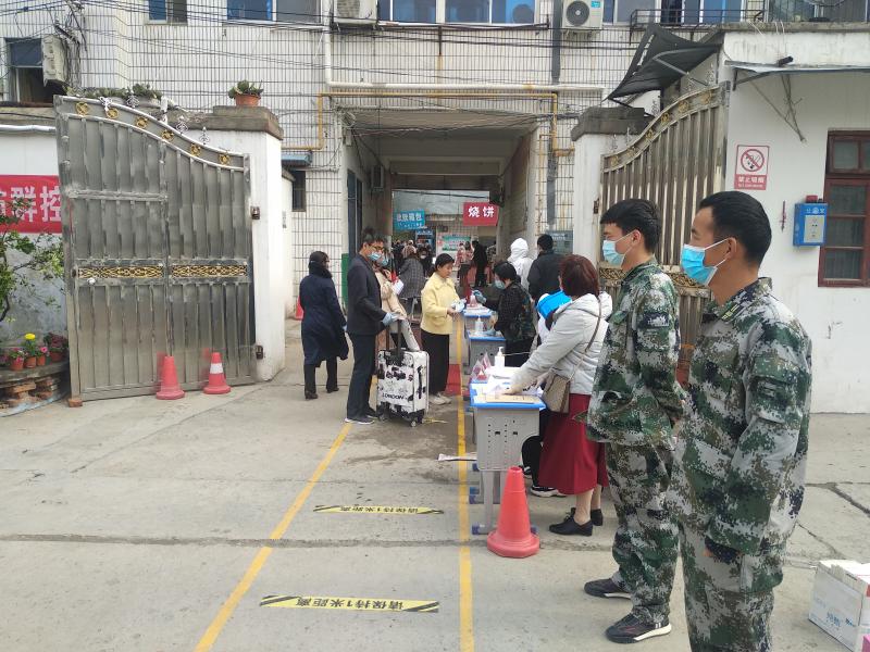 “同學(xué)們,請排好隊(duì),與前面的人保持1米以上的距離。”4月20日上午,在鄲城縣華宇中學(xué),來自洺南街道基干民兵應(yīng)急分隊(duì)的民兵們正在現(xiàn)場維護(hù)秩序,幫助該校做好九年級學(xué)生復(fù)學(xué)入校防疫工作。