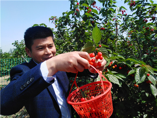 春夏之交,素有“鮮果第一枝”的櫻桃掛滿枝頭。盛產(chǎn)櫻桃的淮陽豆門鄉(xiāng)武灣村第一屆櫻桃采摘節(jié)于4月25日開幕 ,為期半個(gè)月的“武灣快樂鄉(xiāng)村游”活動(dòng)由此拉開大幕。這里,近千畝果園里人頭攢動(dòng),櫻桃映紅了村民和游客們的笑臉。