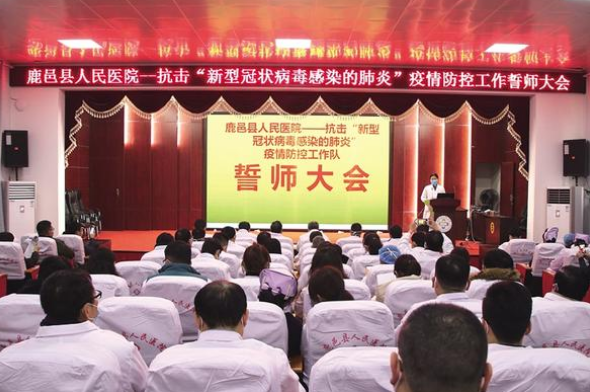 下午4時,老子故里鹿邑縣,縣域醫(yī)療健康服務(wù)集團(tuán)牽頭單位、該縣規(guī)模最大的綜合性二級甲等公立醫(yī)院——縣人民醫(yī)院正在召開新冠肺炎疫情防控工作誓師會。