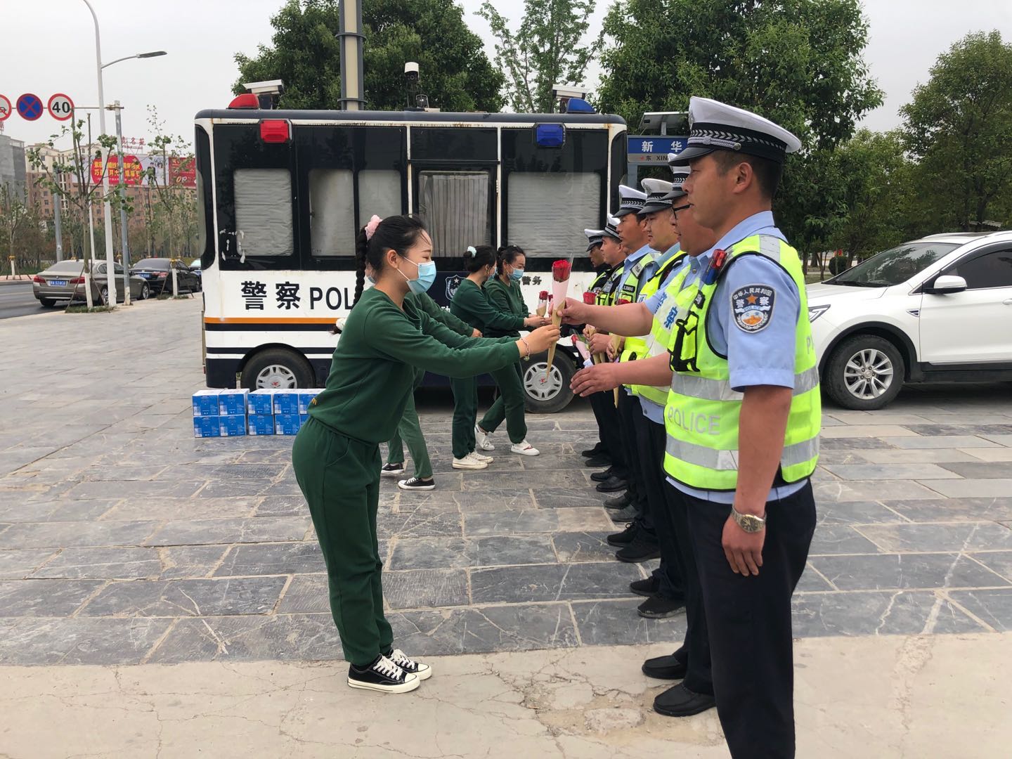 慰問期間,教師們?yōu)楦兄x鄲城交警辛勤的付出,為他們送上錦旗、鮮花和自編的舞蹈,充分表達對一線執(zhí)勤交警堅守崗位、不辭勞苦、敬業(yè)奉獻精神的敬意。