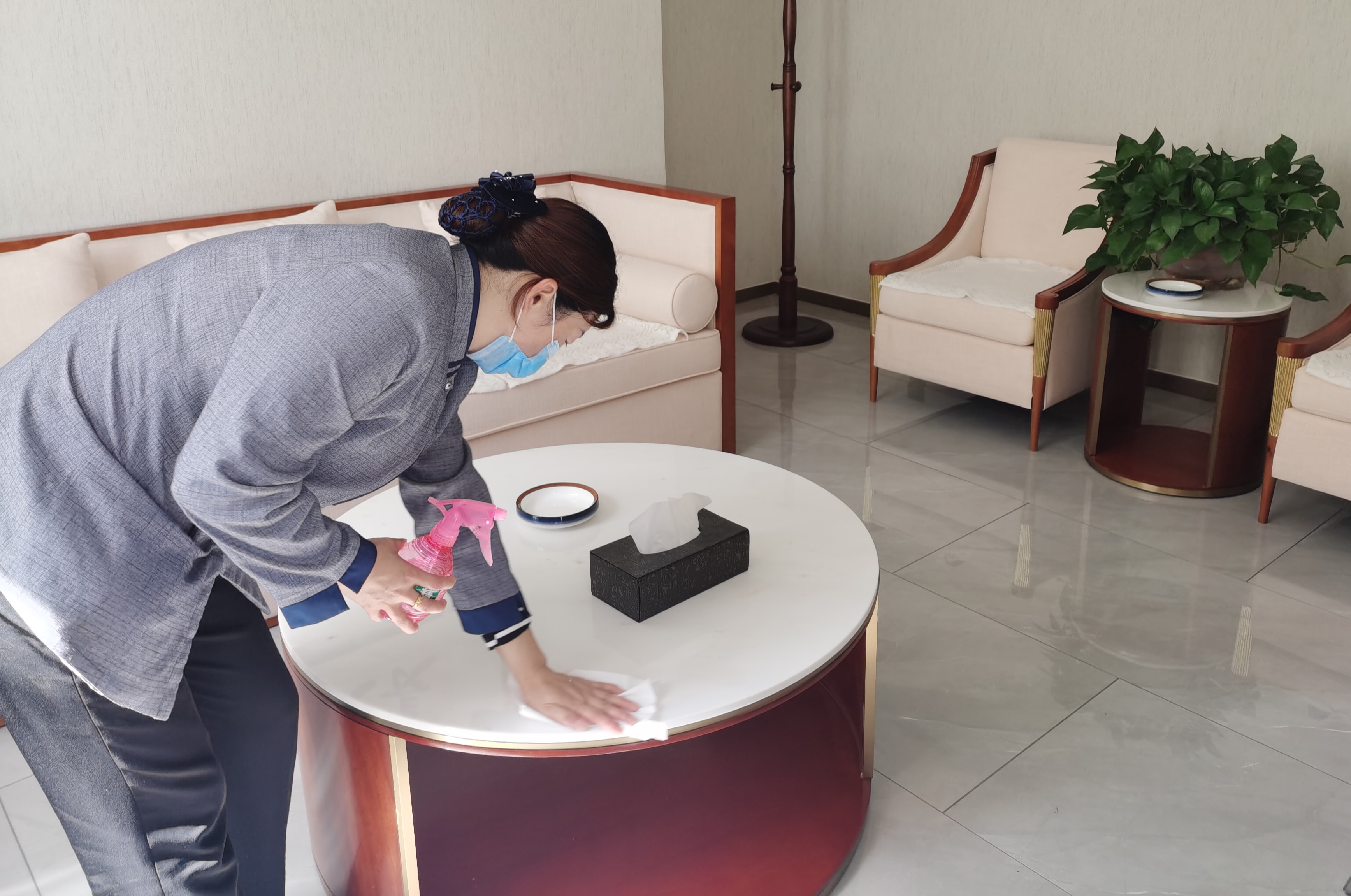 5月10日,記者在“兩會(huì)”駐地酒店看到,酒店工作人員不時(shí)對(duì)客房和公共場(chǎng)所、會(huì)議室進(jìn)行消毒、擦拭。受疫情影響,“兩會(huì)”駐地酒店工作人員認(rèn)真和精心準(zhǔn)備,加強(qiáng)了對(duì)代表、委員駐地消殺防疫,還貼心地放置了一次性電梯按鍵專用紙、酒精等物品。
