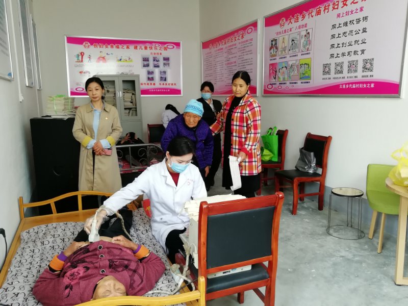 在代廟村黨員活動(dòng)室,區(qū)婦聯(lián)工作隊(duì)與高齡母親們歡聚一堂,婦聯(lián)主席張健代表駐村工作隊(duì)向高齡母親致以節(jié)日的問(wèn)候和美好的祝福,她說(shuō),一個(gè)家庭的幸福離不開(kāi)母親的辛苦操勞,特別是這些高齡母親,經(jīng)歷了艱苦的歲月,為子女和家庭披星戴月、受盡磨難,因積勞成疾造成晚年的行動(dòng)不便。區(qū)婦聯(lián)特意邀請(qǐng)大連鄉(xiāng)衛(wèi)生院的醫(yī)務(wù)人員來(lái)村里的婦女之家為高齡母親進(jìn)行測(cè)血糖、量血壓、做B超、做心電圖、號(hào)脈問(wèn)診,用精湛的醫(yī)術(shù)為大家送上健康的關(guān)懷,確保讓母親們度過(guò)一個(gè)愉快的節(jié)日。