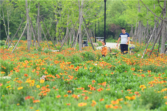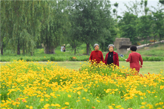 5月17日,市民徜徉在東方園林的花海中,暢享休閑樂趣。近期,位于沙潁河南岸的東方園林內(nèi),成片的天人菊等花卉相繼盛開,猶如五彩的花海,不少市民來些游玩、拍照。