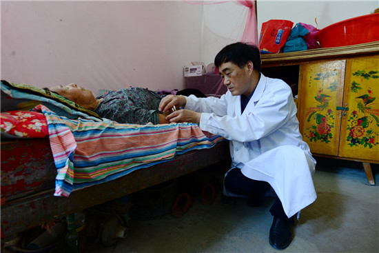 李樓鄉(xiāng)位張行政村72歲的貧困戶張振廷腦中風多年,在大醫(yī)院治療一個月后,留有偏癱后遺癥臥床不起;李莊行政村80歲的貧困戶李體榮也是此癥,因無錢治療,二人均回家“等死”。柴萬靈作為簽約家庭醫(yī)生,就在他們家中設立家庭病床,每周一、三、五到老張家,二、四、六到老李家,給他們采用中醫(yī)針灸、按摩,并為其煎服偏癱復原湯,兩位老人都是半年左右能拄拐下地。
