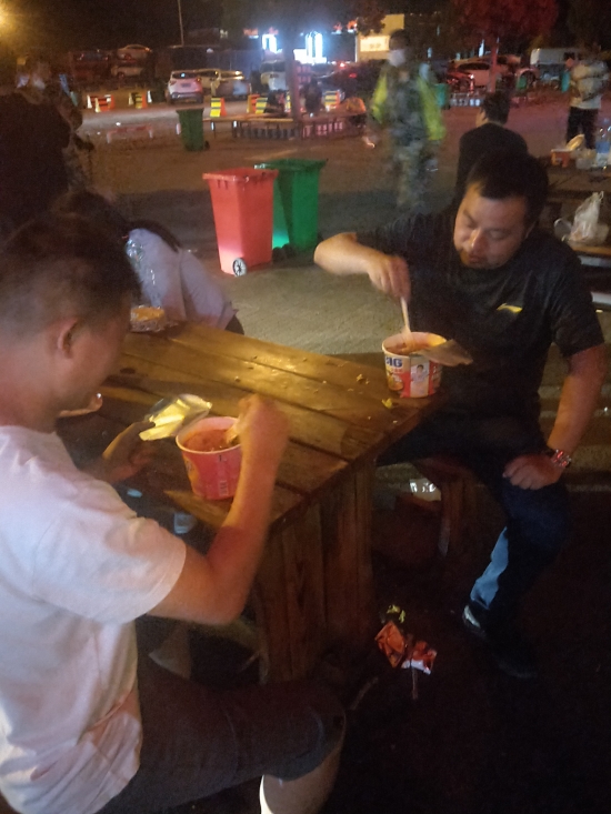 當(dāng)晚,隊(duì)員們帶著嫌疑人歸來(lái),在服務(wù)區(qū)內(nèi),群里傳來(lái)一張大家吃方便面的照片,靳偉成還發(fā)來(lái)一句:“帶了這么多衣服,忙得都沒(méi)有時(shí)間換一件。”