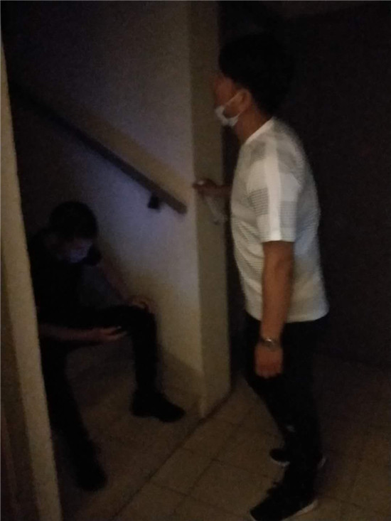 按照事先摸排到的信息,抓捕組民警終于在南京市江寧區(qū)一小區(qū)內(nèi)找到了嫌疑人的居住地,而嫌疑人卻不在屋內(nèi)。于是,民警們便在嫌疑人家門(mén)“守株待兔”,群里發(fā)來(lái)幾張民警坐在樓梯口蹲守照片。等待是漫長(zhǎng)的,一直等到晚上10時(shí)許,嫌疑人始終沒(méi)有出現(xiàn)。民警通過(guò)嫌疑人門(mén)把手上幾天前的一張廣告單頁(yè)判斷,嫌疑人很有可能已經(jīng)不在此居住,便撤離了蹲守點(diǎn)。