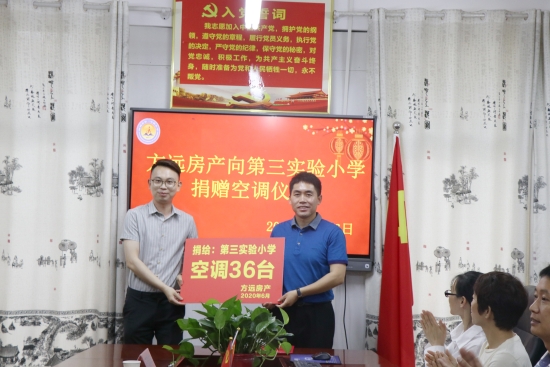 “方遠房地產公司為第三實驗小學捐贈空調,大大改善學校的降溫條件,為孩子們營造更為舒適的學習環(huán)境。”第三實驗小學校長王玉剛表示,學校將以此為契機,號召廣大學生好好學習,長大后回報社會;全校教職員工以優(yōu)異的教學業(yè)績回報社會,傳遞愛心,努力辦學生快樂、教師幸福、家長滿意的現(xiàn)代化學校。