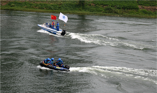 上午9時,隨著田林“開始演練”命令的下達(dá),60人組成的搶險(xiǎn)突擊隊(duì),緊張有序開展了五個科目的演練。突擊隊(duì)員通過巡堤查險(xiǎn),觀察堤坡及堤腳附近有無滲水、管涌、裂縫、滑坡、漏洞等險(xiǎn)情。發(fā)現(xiàn)險(xiǎn)情后,迅速采取導(dǎo)滲、截滲等搶險(xiǎn)措施,確保險(xiǎn)情得到及時、正確、有效的處理或控制。發(fā)現(xiàn)落水人員,四艘沖鋒舟分工明確,立即前往落水地點(diǎn)進(jìn)行救助。