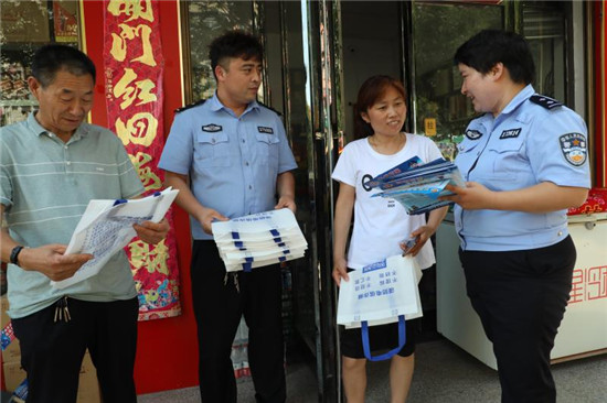 贈送手提袋只是該局眾多宣傳手段的一種。活動開展以來,554個警務工作站的駐村民警、輔警已經(jīng)基本完成了所有家庭的入戶走訪,發(fā)放了反詐傳單50余萬份,1671個“警民一家親”微信群每天推送反詐騙現(xiàn)實案例、常識,顯示反電詐內容的電子屏和標語橫幅隨處可見,鄉(xiāng)村大喇叭的霸氣喊話不絕于耳……