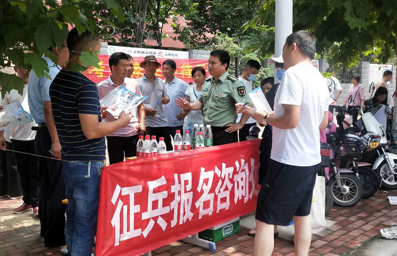 為強化全民依法履行兵役義務(wù)觀念,激發(fā)廣大適齡青年特別是高學歷青年參軍入伍熱情,7月7日至8日,項城市人武部組織機關(guān)所有人員和21個鎮(zhèn)(街道)辦事處武裝部長等36人,深入各考點設(shè)立征兵政策咨詢點,懸掛宣傳標語、擺放宣傳版面,開展以助力高考為目的的大學生征兵宣傳活動。為不影響考場秩序避免打擾高考,7月7日全天,參加宣傳的工作人員悄悄走進家長等待區(qū),現(xiàn)場向廣大考生家長以及過往群眾發(fā)放《應(yīng)征入伍明白卡》、《大學生入伍優(yōu)惠政策》等征兵宣傳資料,并接受咨詢。7月8日下午5點30分后,為期兩天的高考結(jié)束后考生放松的走出考場大門之際,所有人員同時守在大門外,一邊給考生發(fā)放宣傳資料,一邊接受學生咨詢和報名,給他們講解大學生入伍政策、法規(guī),介紹“應(yīng)征入伍的政治、文化、身體和年齡條件”、“報名程序”、“就業(yè)安置”等相關(guān)內(nèi)容,鼓勵高中畢業(yè)生帶著成績和文化知識投身軍營、報效祖國。
