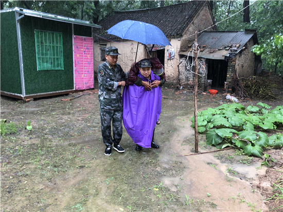 強(qiáng)降雨導(dǎo)致部分地勢(shì)較低的農(nóng)房及農(nóng)田被淹,在排查中,發(fā)現(xiàn)鄭老莊村幾處農(nóng)房被水淹泡,隨時(shí)有倒塌的危險(xiǎn),了解這一情況后,該鎮(zhèn)第八工作區(qū)區(qū)長(zhǎng)、“中國(guó)好人”、優(yōu)秀退役軍人蔣昆立即組織鄭老莊村兩委人員及民兵應(yīng)急隊(duì),第一時(shí)間趕到現(xiàn)場(chǎng),轉(zhuǎn)移隱患點(diǎn)周圍住戶。“雨越來(lái)越大,你們這個(gè)屋今晚上不能住了,反正隨時(shí)都有倒塌的危險(xiǎn),把要緊的東西收拾一下,跟到我們走快點(diǎn)”蔣昆勸說(shuō)鄭老莊村受災(zāi)的一名老大爺。