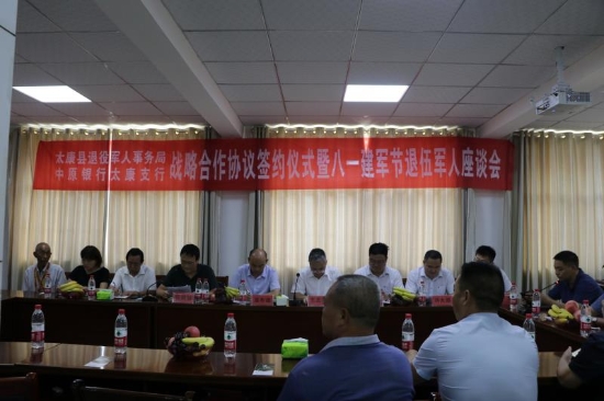 7月31日,太康縣退役軍人事務(wù)局與中原銀行太康支行舉行戰(zhàn)略合作協(xié)議簽約儀式,同時(shí)組織部分退役軍人召開了慶“八一”座談會(huì)?;顒?dòng)由退役軍人事務(wù)局副局長(zhǎng)張規(guī)劃主持。