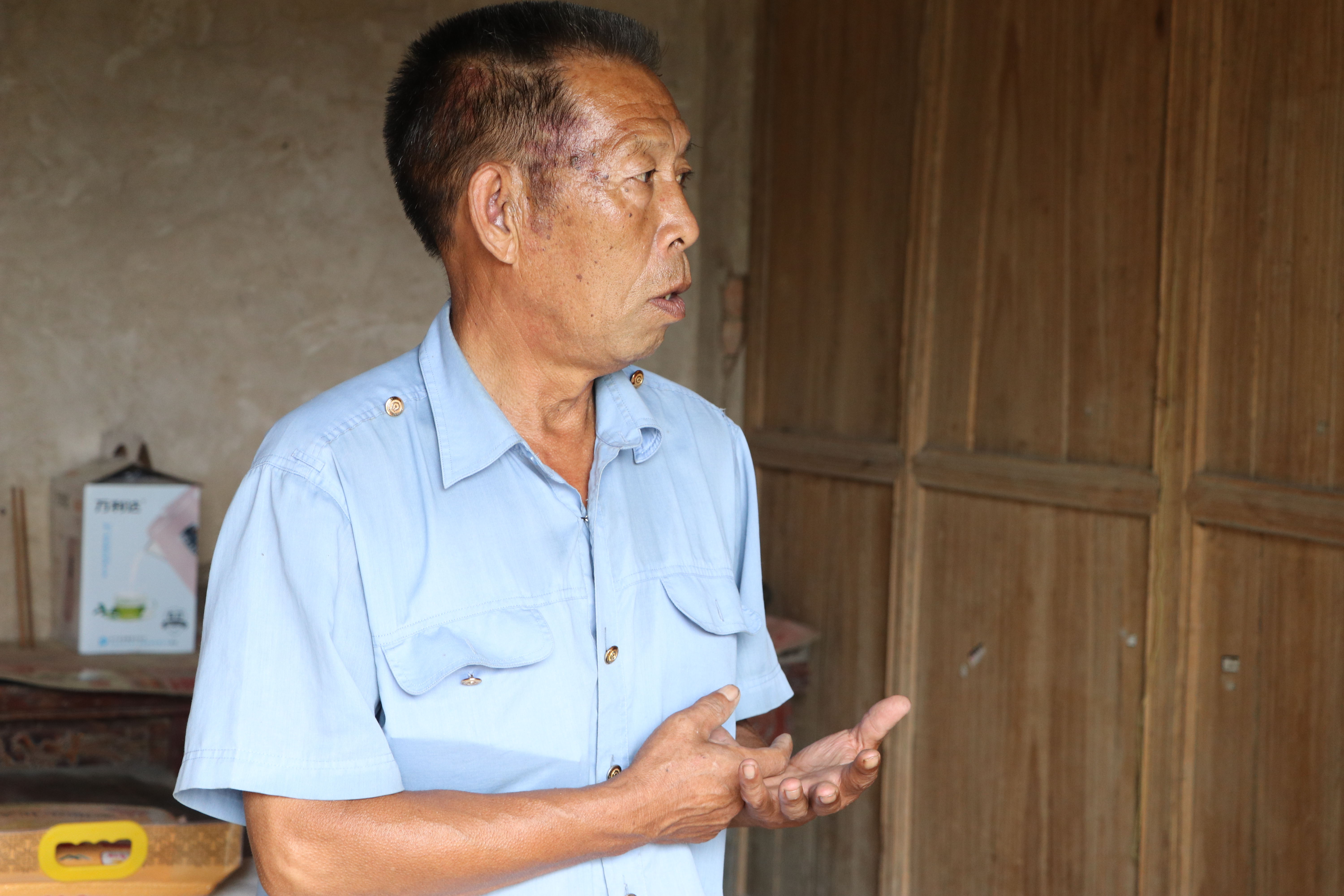 孫朝杰一人扛起了家里的大小事,盡心盡力地照顧母親,院里院外從不遠(yuǎn)行,他不能外出打工,生活拮據(jù)??h委組織部駐村干部尚衛(wèi)東第一次跟著支部書記孫玉彬一起到孫朝杰家里走訪時(shí),他正背著母親到門口曬太陽,看到他們,孫朝杰有些窘迫。