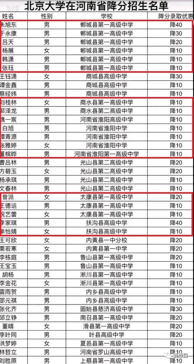 其中北京大學最高降分為40分,最低降分為10分。清華大學在河南招生最高降分為60分,最低降分為20分。