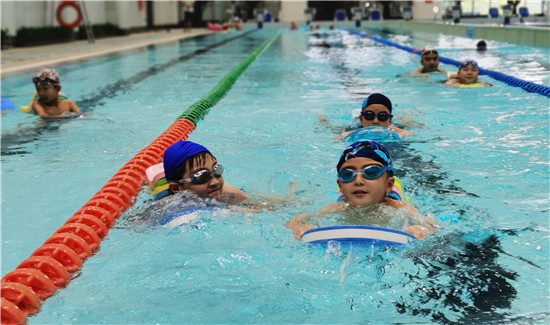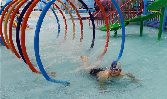 8月16日,不少家長帶孩子在周口游泳館游戲嬉戲。持續(xù)的高溫天氣讓周口進入“燒烤”模式,水里的清涼世界成了消暑降溫的好去處,不少市民選擇到游泳館、水上游樂場館,既可以游泳鍛煉身體,也可以和孩子們在水中親子玩耍。