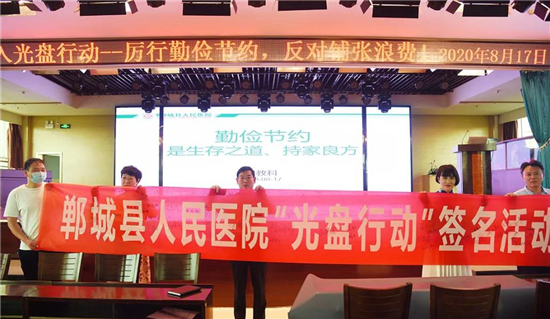 8月17日上午,鄲城縣人民醫(yī)院舉行“光盤(pán)行動(dòng)”啟動(dòng)儀式,在全院開(kāi)展以“厲行勤儉節(jié)約,反對(duì)鋪張浪費(fèi)”為主題的“光盤(pán)行動(dòng)”。