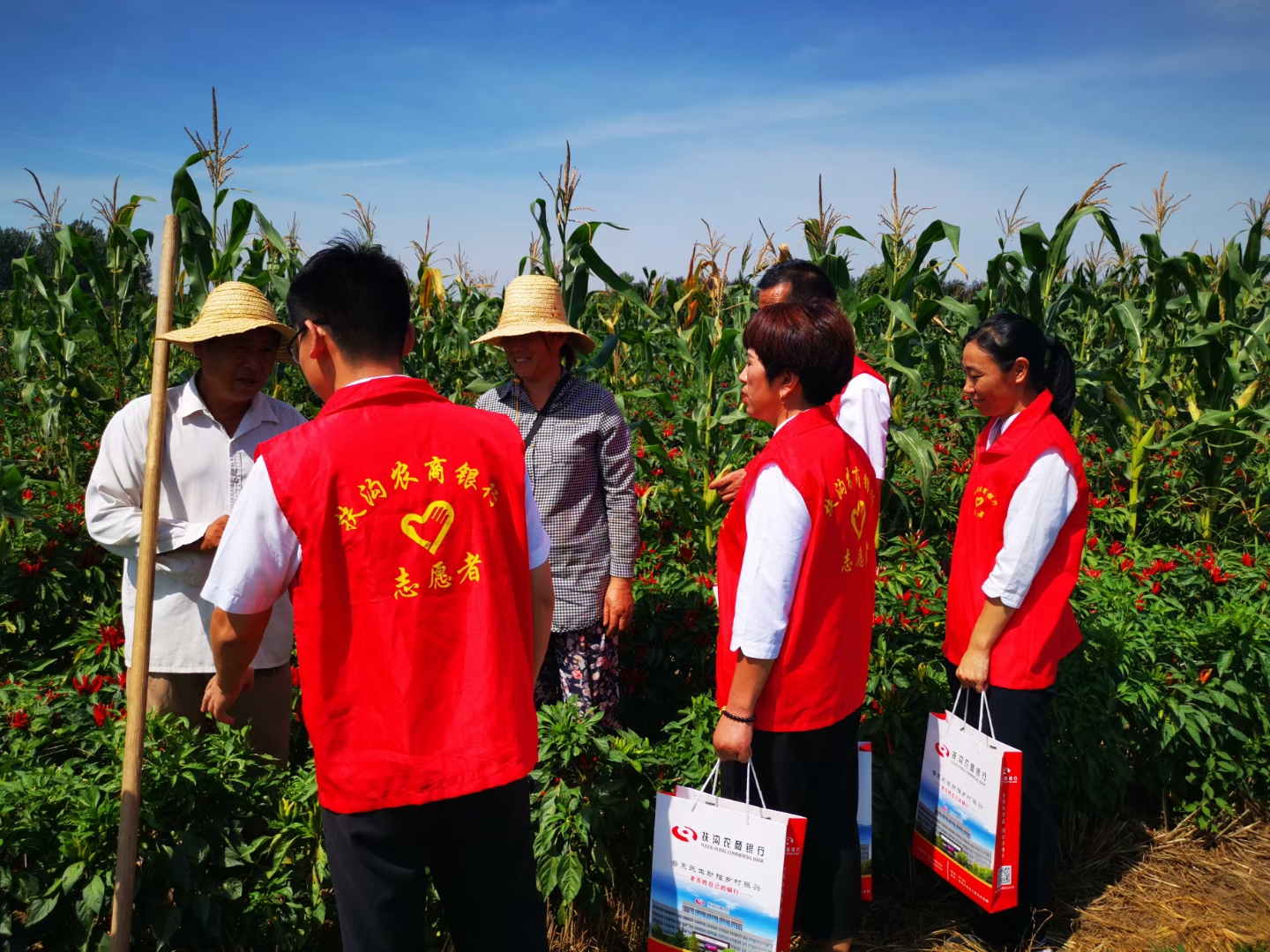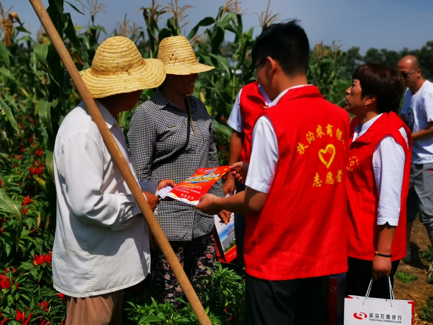 9月5日,扶溝農商銀行大新支行“紅馬甲”們結合金融知識普及月深入田間地頭為老百姓送上金融服務和金融知識,深受村民的歡迎。