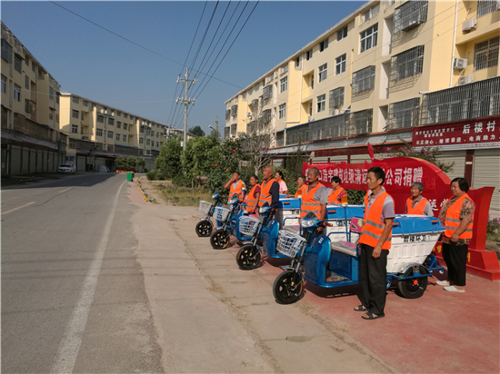 9月12日上午,西華縣西華營鎮(zhèn)后樓行政村迎來了一件大喜事,周口浩宇建筑垃圾清運有限公司董事長陳雨生一行一大早來到西華營鎮(zhèn)后樓行政村,為后樓村捐贈價值兩萬余元嶄新的環(huán)衛(wèi)垃圾清運電動車4臺,以全力打造美麗鄉(xiāng)村,改善人居環(huán)境,為決戰(zhàn)決勝脫貧攻堅獻上了一份愛心。鎮(zhèn)人大主席姚衛(wèi)民、后樓行政村黨支部書記高運動出席捐贈儀式。