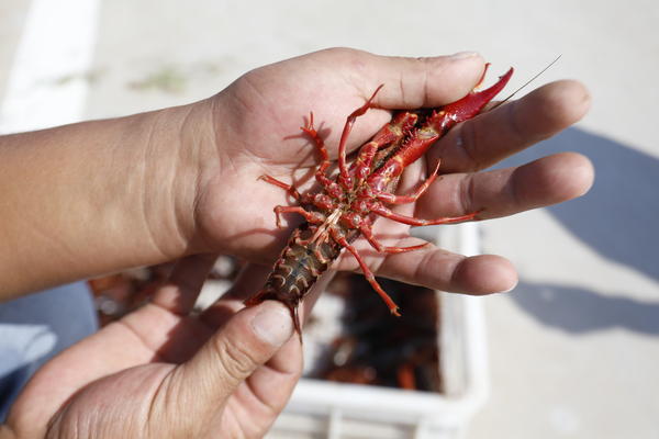 ▲養(yǎng)殖基地生產的小龍蝦個大、腹白