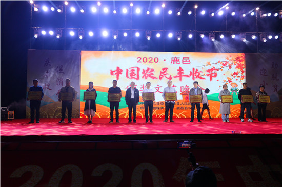9月22日晚,由中共鹿邑縣委、鹿邑縣人民政府主辦的2020年鹿邑縣農(nóng)民豐收節(jié)文藝晚會在鹿邑縣文化中心廣場舉辦。晚會現(xiàn)場頒布了鹿邑縣“十佳家庭農(nóng)場”“十佳農(nóng)民合作社”“十佳特色農(nóng)產(chǎn)品品牌”“十佳返鄉(xiāng)創(chuàng)業(yè)脫貧致富帶頭人”“十佳脫貧致富先進個人”五項獎項,40名新型農(nóng)民(農(nóng)場、合作社)代表和10個特色農(nóng)產(chǎn)品品牌獲殊榮,他們用行動和產(chǎn)品充分展示了全縣現(xiàn)代農(nóng)業(yè)在過去一年中取得的輝煌成果。縣領導雷申、楊所超、侯自峰、王曉征、張國慶、肖西國等出席豐收節(jié)晚會,并為獲獎者頒發(fā)榮譽證書和獎牌。