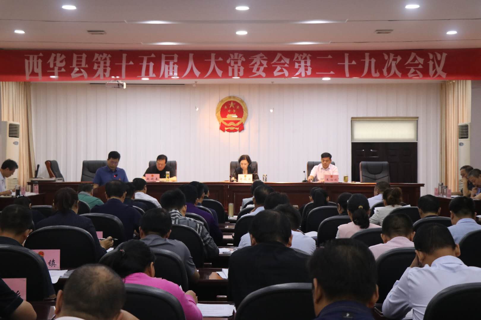 9月25日,西華縣十五屆人大常委會召開第二十九次會議。縣人大常委會主任周曉燕,副主任趙曉春、王心坎和縣十五屆人大常委會委員出席會議??h委常委、縣政府常務副縣長王獻超,縣監(jiān)察委員會、縣法院、縣檢察院負責人,縣“一府一委兩院”的辦公室主任,縣人大法制委員會組成人員、財政經(jīng)濟預算委員會組成人員,縣直有關單位負責人,各鄉(xiāng)鎮(zhèn)人大主席,各辦事處和縣直代表聯(lián)絡站站長以及縣人大常委會機關工作人員等列席會議。