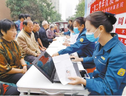 為滿足社區(qū)居民基本醫(yī)療衛(wèi)生服務(wù)需求,文昌社區(qū)衛(wèi)生服務(wù)中心開展了“優(yōu)質(zhì)服務(wù)基層行”活動(dòng),組織醫(yī)務(wù)人員走進(jìn)小區(qū),為居民進(jìn)行免費(fèi)健康體檢,并建立健康檔案。圖為9月25日,醫(yī)務(wù)人員在建業(yè)小區(qū)為居民測量血壓,并建立健康檔案。