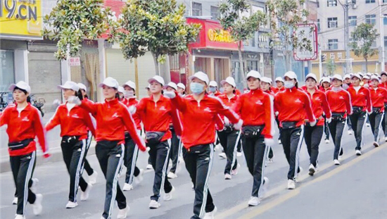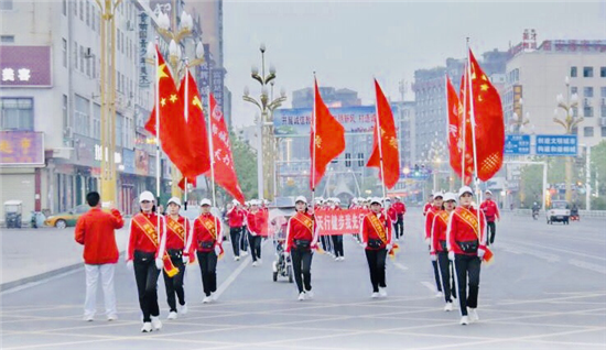 10月11日早晨,鄲城大街上迎來了一道靚麗的風(fēng)景線——他們身著鮮艷的紅色運(yùn)動服,肩扛五星紅旗,手扯橫幅,隨著動感十足的音樂,昂首闊步徜徉在金色的秋天里……