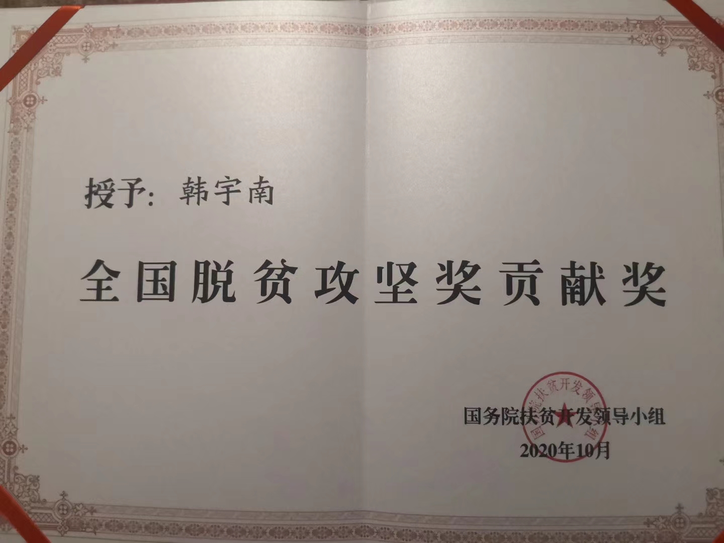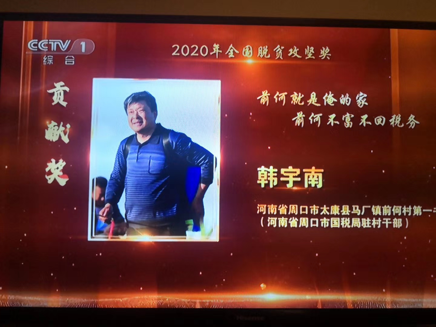 10月17日,2020年全國(guó)脫貧攻堅(jiān)獎(jiǎng)表彰大會(huì)暨首場(chǎng)脫貧攻堅(jiān)先進(jìn)事跡報(bào)告會(huì)在北京舉行。當(dāng)天,國(guó)務(wù)院扶貧開發(fā)領(lǐng)導(dǎo)小組辦公室官網(wǎng)發(fā)布了關(guān)于表彰2020年全國(guó)脫貧攻堅(jiān)獎(jiǎng)的決定,太康縣馬廠鎮(zhèn)前何村第一書記韓宇南榮獲全國(guó)脫貧攻堅(jiān)貢獻(xiàn)獎(jiǎng)。