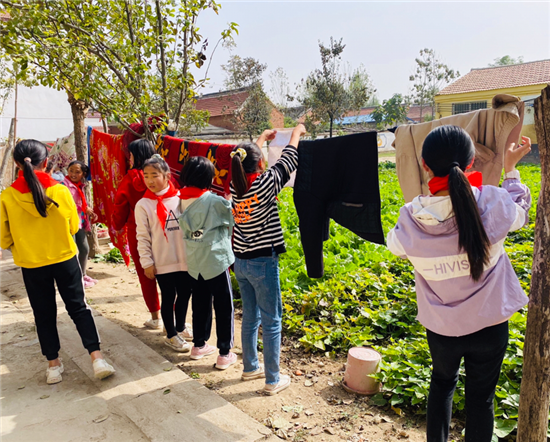 當(dāng)日9時(shí),學(xué)校各中隊(duì)隊(duì)員在校門(mén)口準(zhǔn)時(shí)集合,在校領(lǐng)導(dǎo)和大隊(duì)輔導(dǎo)員的帶領(lǐng)下,來(lái)到鎮(zhèn)敬老院。在敬老院里,孩子們認(rèn)認(rèn)真真清掃落葉和垃圾,為老人們晾曬被褥、衣物,擦洗用具,陪老人們聊天,還為每位老人贈(zèng)送了一雙“愛(ài)心棉手套”。老人們看著一張張青春陽(yáng)光的笑臉和一雙雙忙碌不停的小手,心里充滿溫暖和感激。