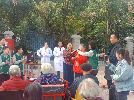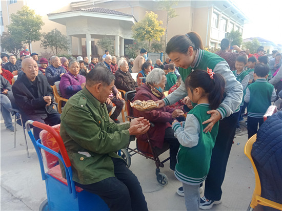 來到周口市老年護理院之后,學(xué)生們在老師的有序組織和家長們大手牽小手的幫助下,給那里的爺爺奶奶們送去了節(jié)日的祝福。祝愿爺爺奶奶身體健康,生活快樂!同時為爺爺奶奶表演了自編自導(dǎo)的節(jié)目。孩子們的有趣表演博得老人們開心開懷,并給以陣陣掌聲。
