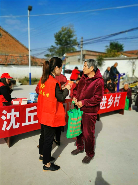為助力鄉(xiāng)村振興,不斷提高廣大農(nóng)村留守婦女的法律意識(shí),切實(shí)解決她們生產(chǎn)生活中存在的法律難題,10月25日上午,沈丘縣婦聯(lián)借“快樂星期天公益行”主題活動(dòng)之機(jī),走進(jìn)北城辦事處蘇樓村居委,對(duì)《民法典》《婦女權(quán)益保障法》《反家庭暴力法》《未成年人保護(hù)法》等有關(guān)法律法規(guī)進(jìn)行宣傳,把法律服務(wù)送到群眾家門口。