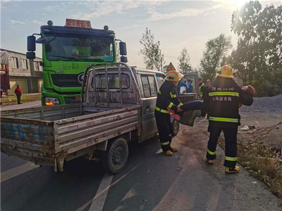 周口市商水縣公安局交警大隊為提高民警處置國、省道市縣結(jié)合部路段道路交通事故應(yīng)急救援能力,第一時間救助受傷人員,最大限度將交通事故造成的人員傷亡、財產(chǎn)損失、環(huán)境污染等危害后果降低到最小限度。10月26日下午3時,在周口市交警支隊事故科王領(lǐng)科長的協(xié)調(diào)指揮下,商水縣公安局交警大隊聯(lián)合駐馬店市上蔡縣公安局交警大隊,在223省道(原219省道)商水縣與上蔡縣交界處的上蔡縣華陂鎮(zhèn)賴莊路段,模擬大貨車與微型貨車發(fā)生事故現(xiàn)場,演練省道市際突發(fā)道路交通事故應(yīng)急救援行動。