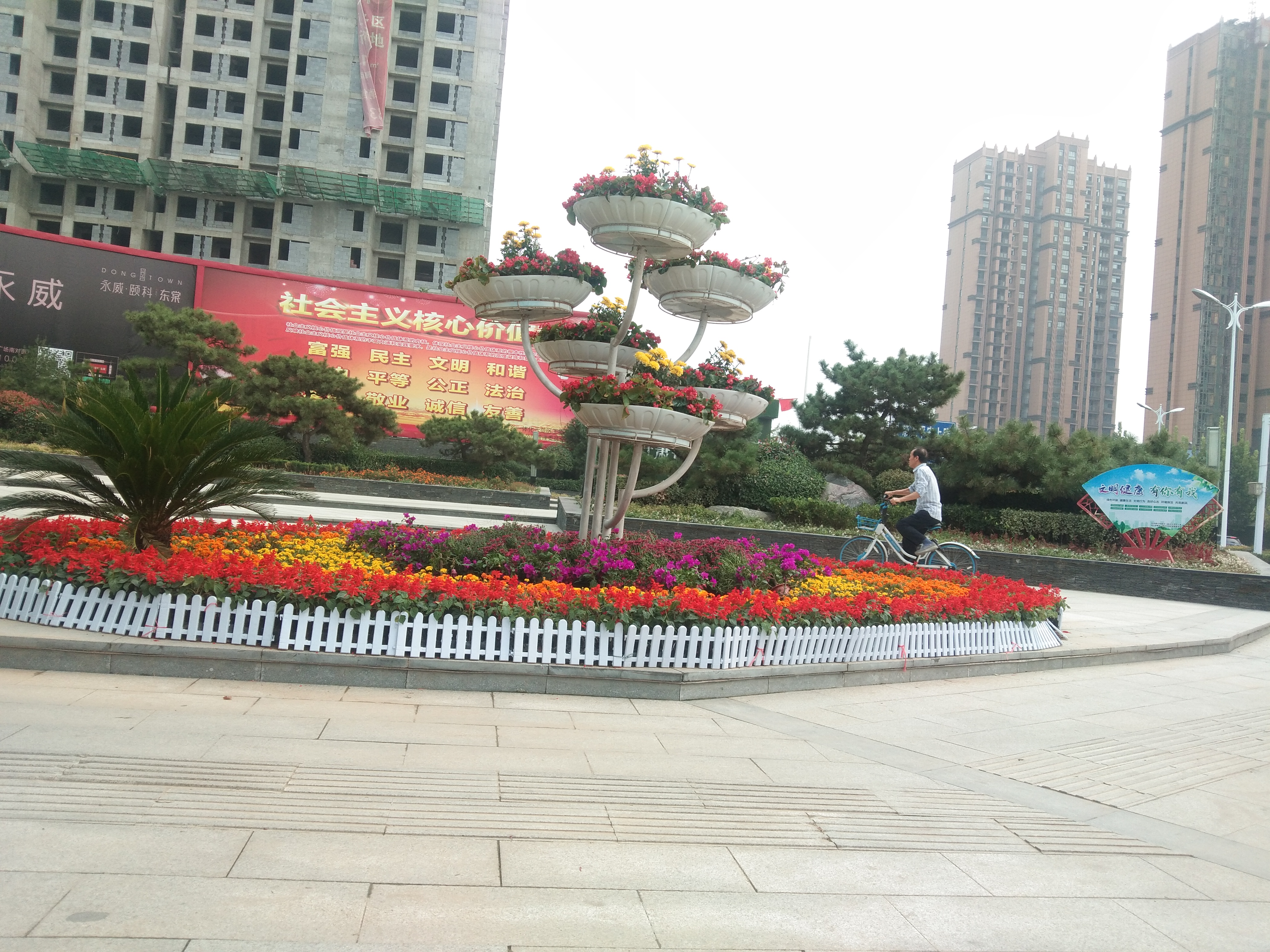 10月29日,記者在周口中心城區(qū)文昌大道與大慶路交叉口看到,一個大型花架出現(xiàn)在街頭游園內(nèi),上面各種美麗的花兒裝點著不大的游園,給市民休閑娛樂營造了良好的環(huán)境。①9