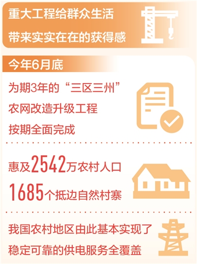 從“用上電”到“用好電”,今年6月底,為期3年的“三區(qū)三州”農(nóng)網(wǎng)改造升級(jí)工程按期全面完成,惠及2542萬農(nóng)村人口、1685個(gè)抵邊自然村寨,我國(guó)農(nóng)村地區(qū)由此基本實(shí)現(xiàn)了穩(wěn)定可靠的供電服務(wù)全覆蓋。