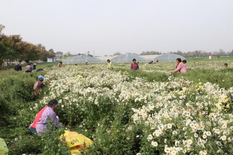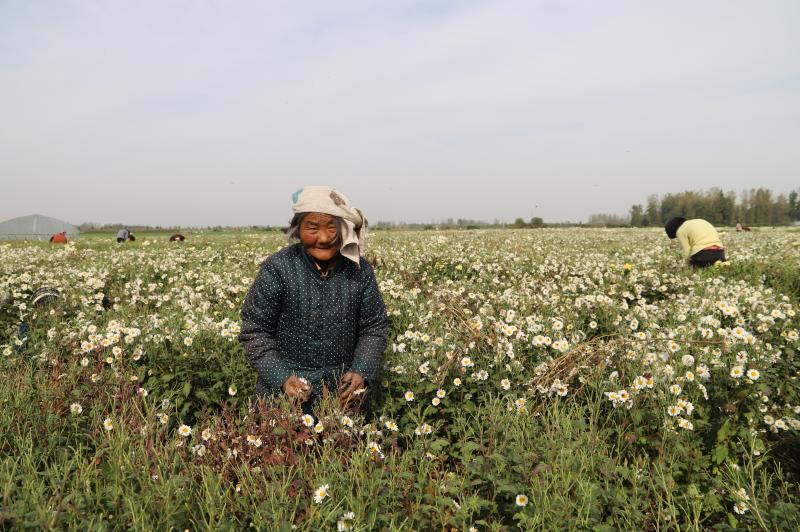 原來(lái),菊花田的老板叫晉振中,于2018年從全縣脫貧攻堅(jiān)種植信息渠道得知種菊花能致富,銷售的末端是安徽亳州的藥材市場(chǎng)和一些花茶商家。特別是種植方式和平原種植紅薯一樣,把田地打成壟,栽苗、施肥、澆水、除草,9月份采摘一次、11月份采摘一次,剩下的菊花秸稈粉碎到田間作為肥料,還能種植晚小麥,十分方便。于是,他通過(guò)鎮(zhèn)村兩級(jí)黨員干部協(xié)助流轉(zhuǎn)了100畝土地,2019年就掙了20多萬(wàn)元。由于晉菜園村是貧困村,在他的菊花田務(wù)工的勞動(dòng)力大多是貧困戶,能帶動(dòng)近百戶貧困戶脫貧致富,晉振中欣慰地覺(jué)得自己為脫貧攻堅(jiān)做了一份大貢獻(xiàn)。