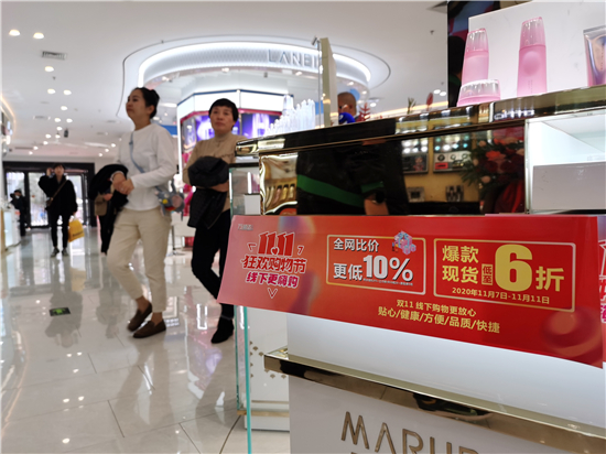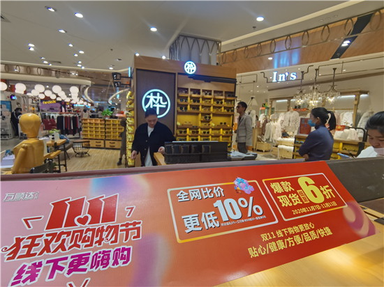 今天是“雙十一”,周口街頭不少商場、實體門店紛紛推出促銷優(yōu)惠活動。今年 雙“十一”電商打折,線下實體店也當仁不讓,使盡招數進行銷售。記者在中心城區(qū)看到,某大型商場策劃了“11.11狂歡購物節(jié)”活動,打出了“全網比價更低10%”的橫幅,還有的實體店更是明碼標價進行優(yōu)惠活動。②18